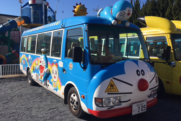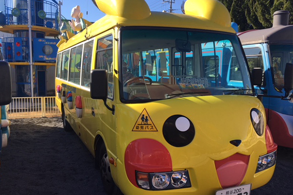 ドラえもん号、ピカチュウ号が、園児たちを送迎いたします。快適なドリーム・バスでシートベルトを着用し、安全に楽しく登降園できるように配慮しています。